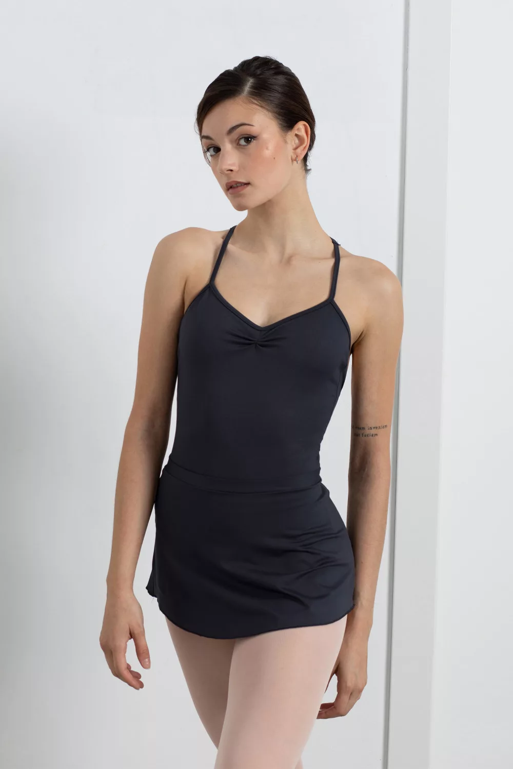Gumis derekú repertoár szoknya. Rövid szabású, melynek köszönhetően kényelmes, nem akadályoz a mozgásban. Remek választás a következő balett órára!