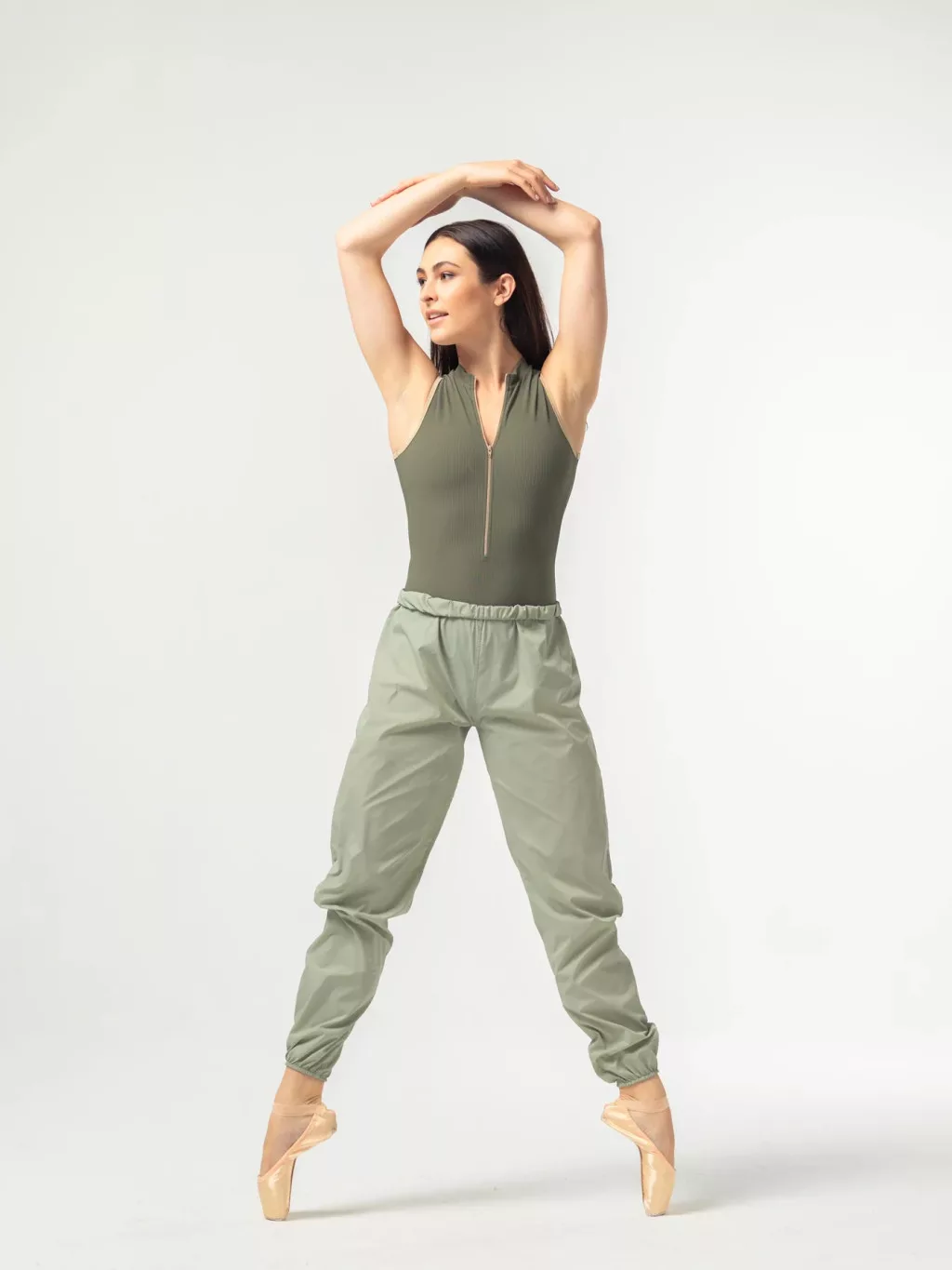 Könnyű, mégis zárt anyaga jól tartja a hőt, miközben a rugalmas derék- és bokarész gondoskodik a kényelmes illeszkedésről. Praktikus viselet próbákhoz, edzésekhez vagy bármilyen fizikai aktivitáshoz, ahol fontos a gyors bemelegítés és az izzadási folyamat támogatása.