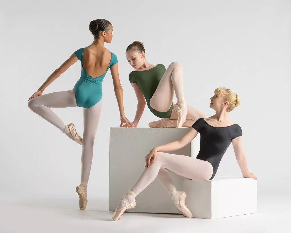 Kurzärmliges Basic-Tanztrikot von Ballet Rosa mit tiefem Rückenausschnitt, U-Boot-Ausschnitt und klaren Linien. Basic-Stück, Grundausstattung, die für die Gestaltung angemessener Tanzkleidung unerlässlich ist und durch sein klassisches Design und seine Schlichtheit besticht.