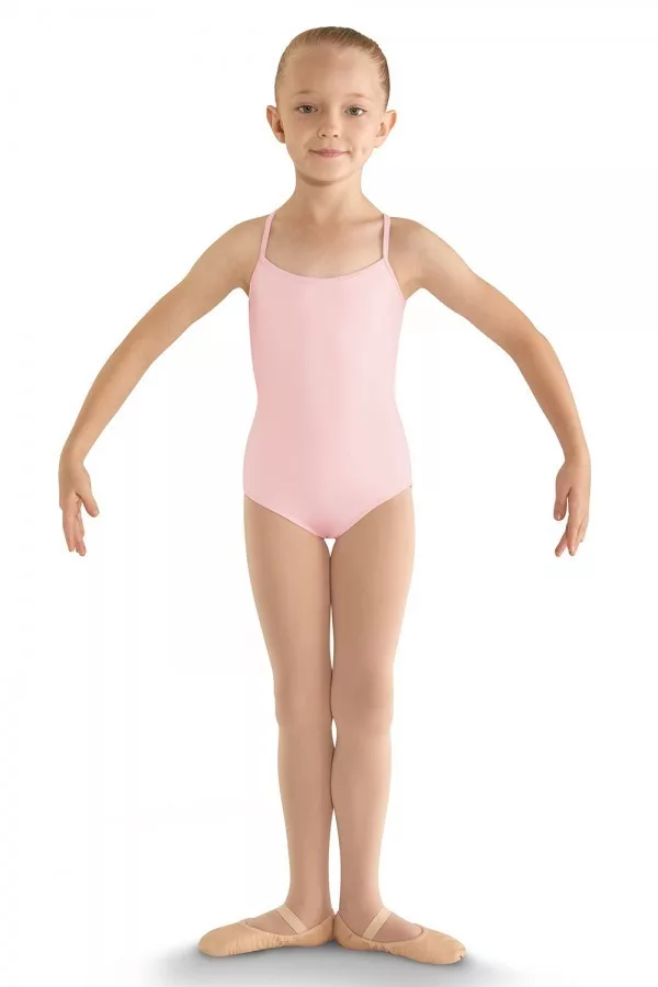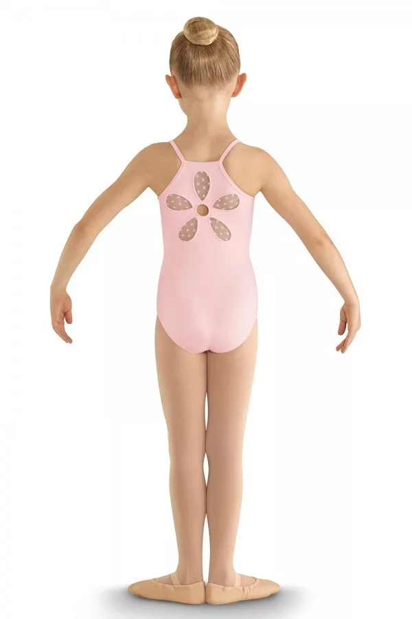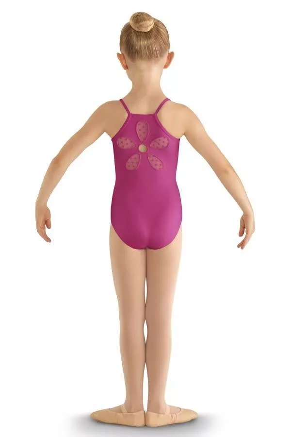 Bloch Tanztrikot mit Spaghettiträgern für Kinder, Rücken mit Blumenmuster und Netzeinsatz. Perfekt für den Proberaum oder die Bühne.