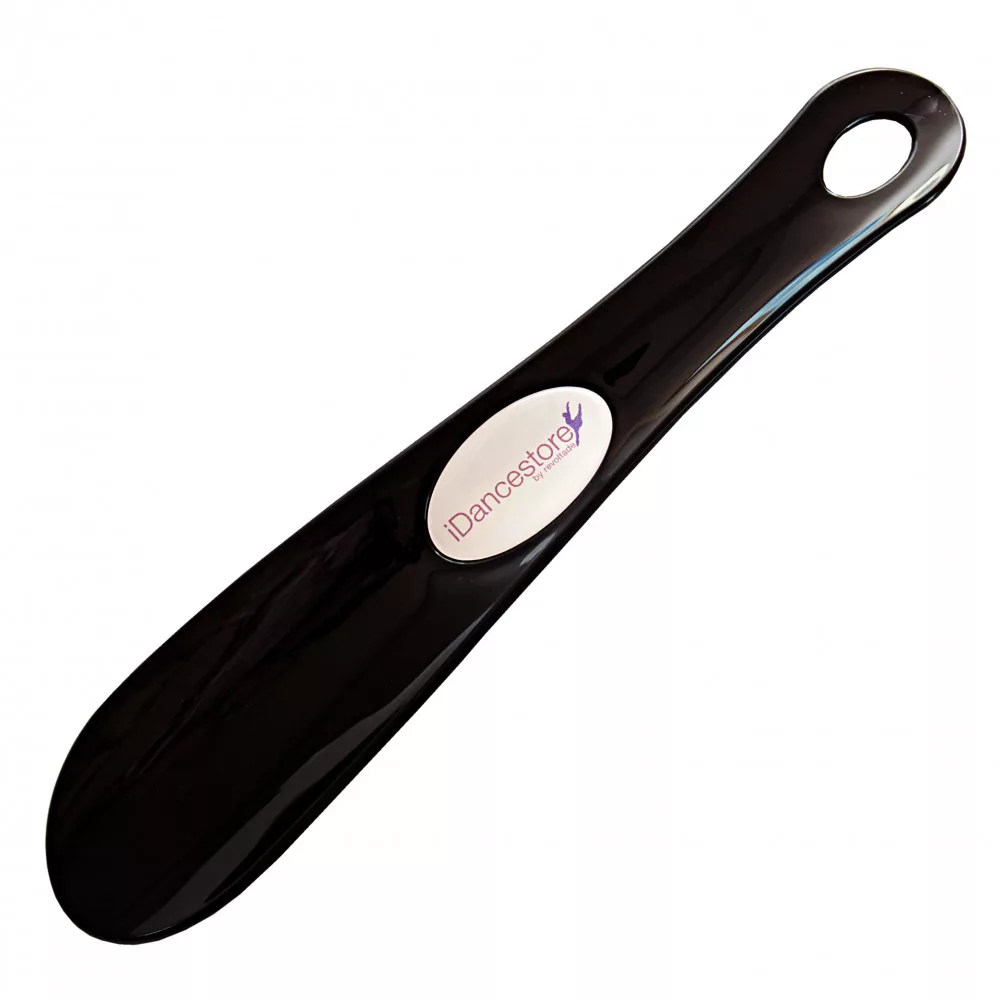 Schuhlöffel aus Kunststoff mit dem iDancestore-Logo, falls Sie beim Anziehen Ihrer Tanzschuhe ein wenig Hilfe benötigen.