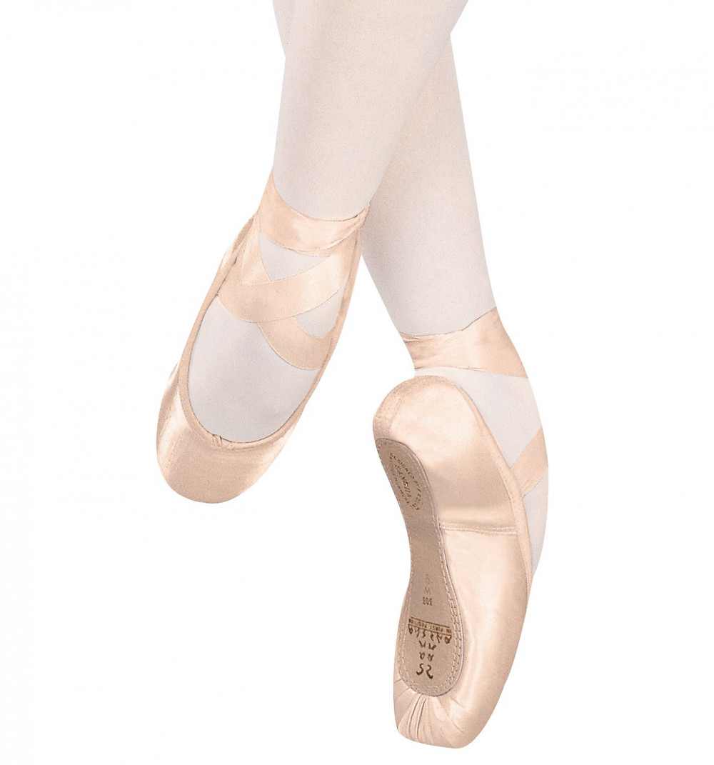 202SP Recital Spitzenschuhe mit weicher Sohle aus Satinmaterial. Rund geschnittenes Zehenteil, durch seine weiche Sohle besonders für Einsteiger zu empfehlen, neben und in der Stockmitte.