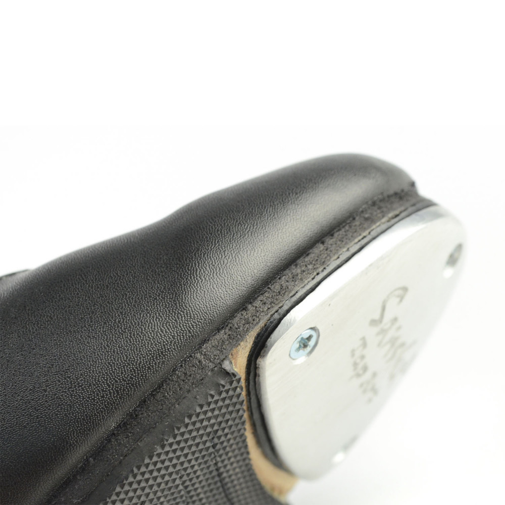 Sansha-Stufenschuhe aus Leder in Kindergrößen. Der obere Teil ist verstellbar und verfügt über einen Klettverschluss. Aufgrund seines Materials ist es auch eine hervorragende Wahl für lässige Steppschuhe, die sowohl für Einsteiger als auch für Fortgeschrittene zu empfehlen sind.