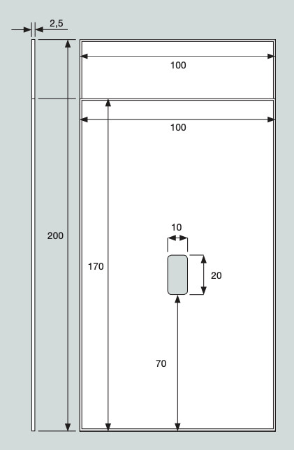 • A tükrön lévő nyílás mérete: 10 x 20 cm