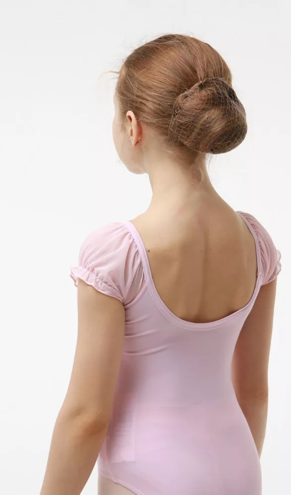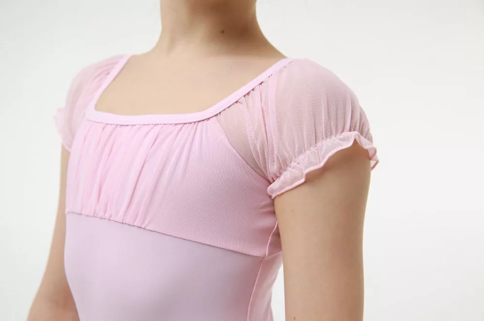 Children's leotard with puffy sleeves. It has a special, double, ribbed material on the front, and the tulle sleeves have a real princess design. With its simple, clean cut, it can be an essential part of your child's dance clothes, whether you choose it for a lesson or a performance!