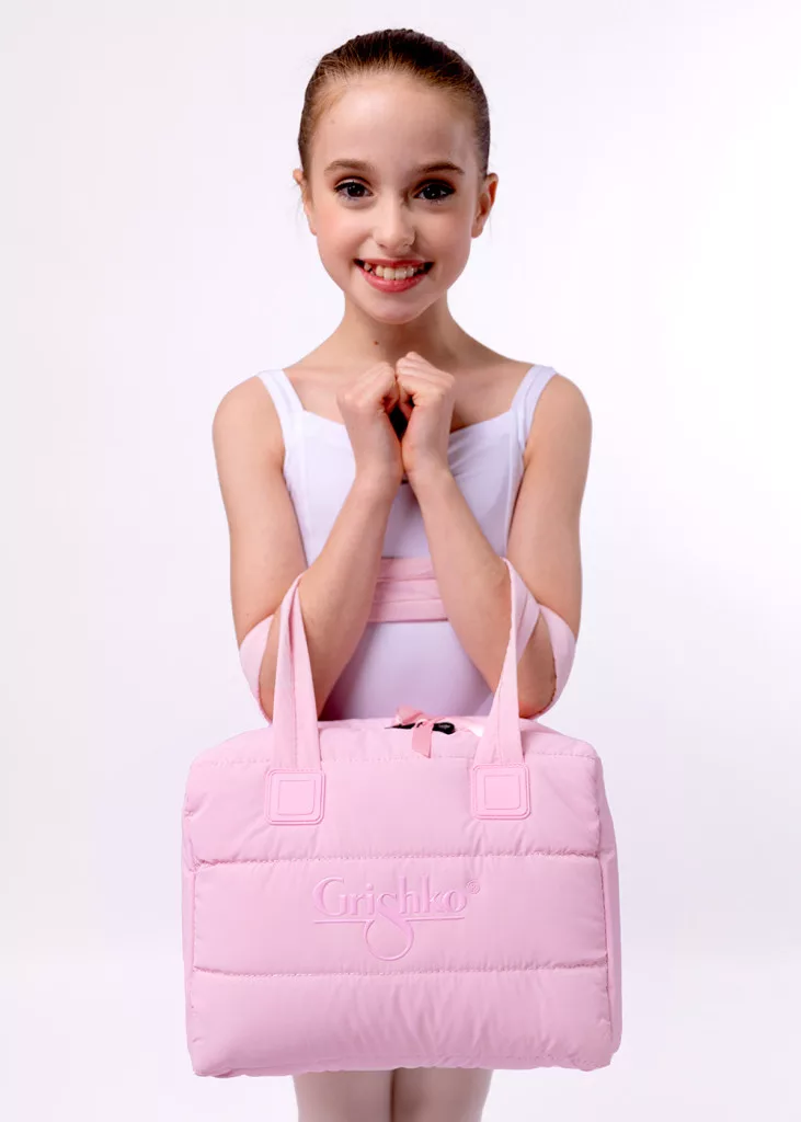 Logoed pointe shoe holder bag. Its appearance and design are just like those of a large suitcase, because you can put not only pointy shoes in it, but all the accessories you need, which is helped by the many separate small internal compartments.