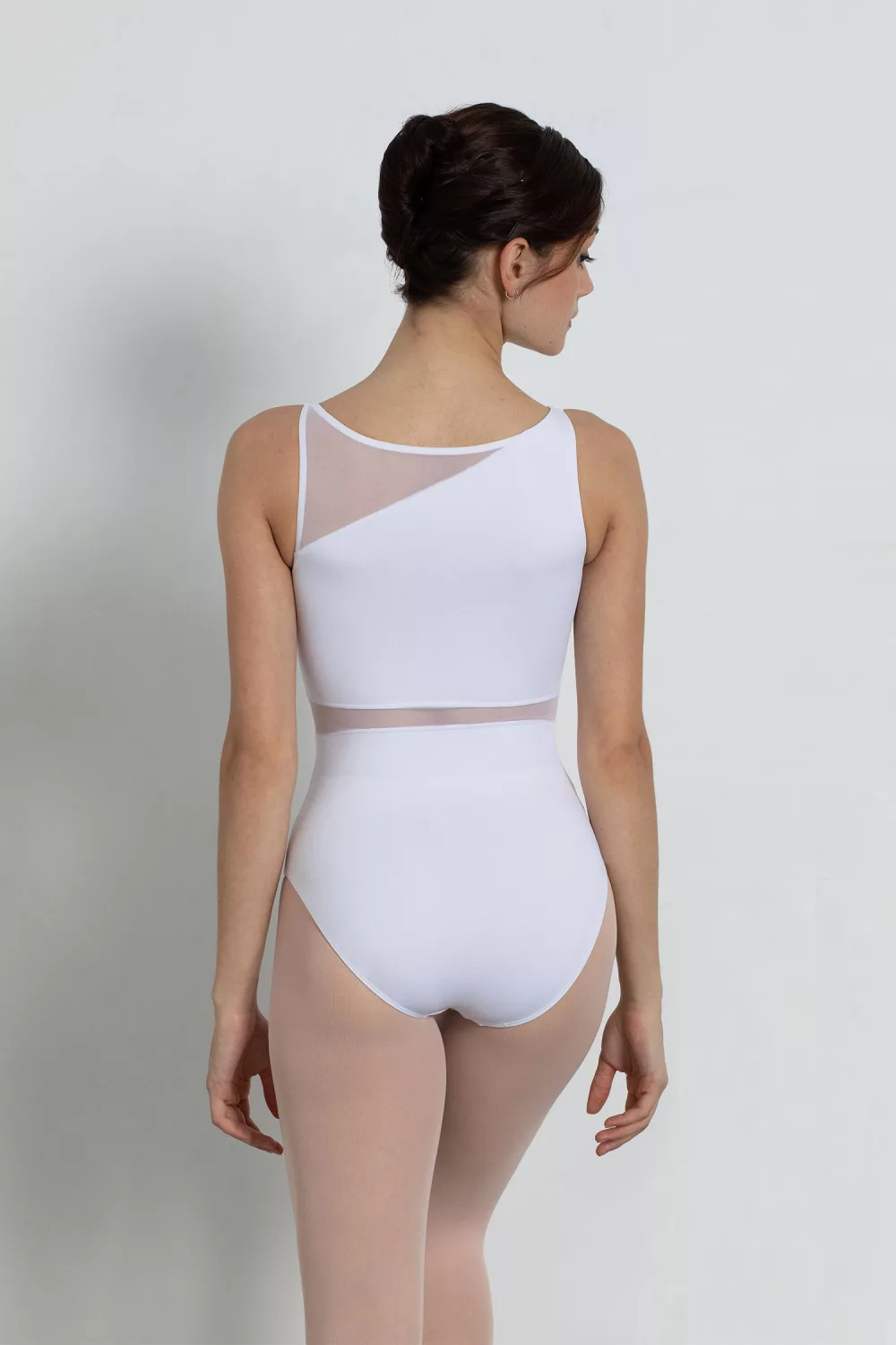 Sleeveless leotard with tulle lining. Thanks to its round neckline, it is comfortable to wear, which is made exciting by tulle inserts in several places. An excellent choice not only for ballet lessons, but also for exams and performances!