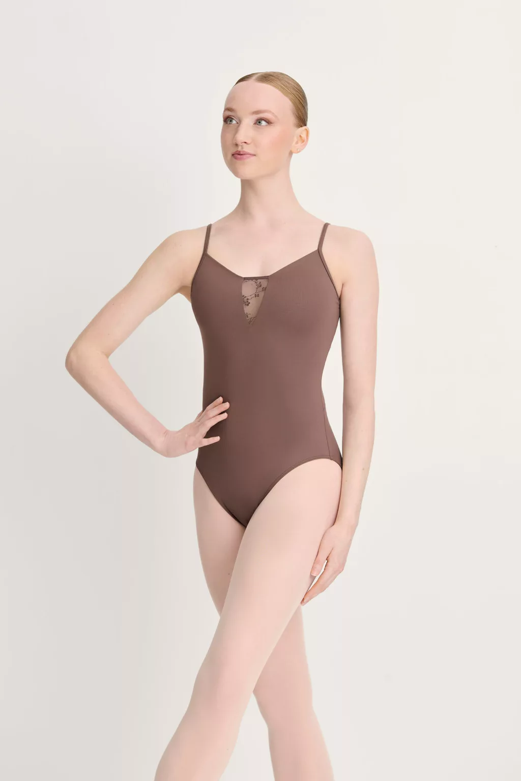An elegant and feminine ballet leotard that makes classic lines special with delicate details.
