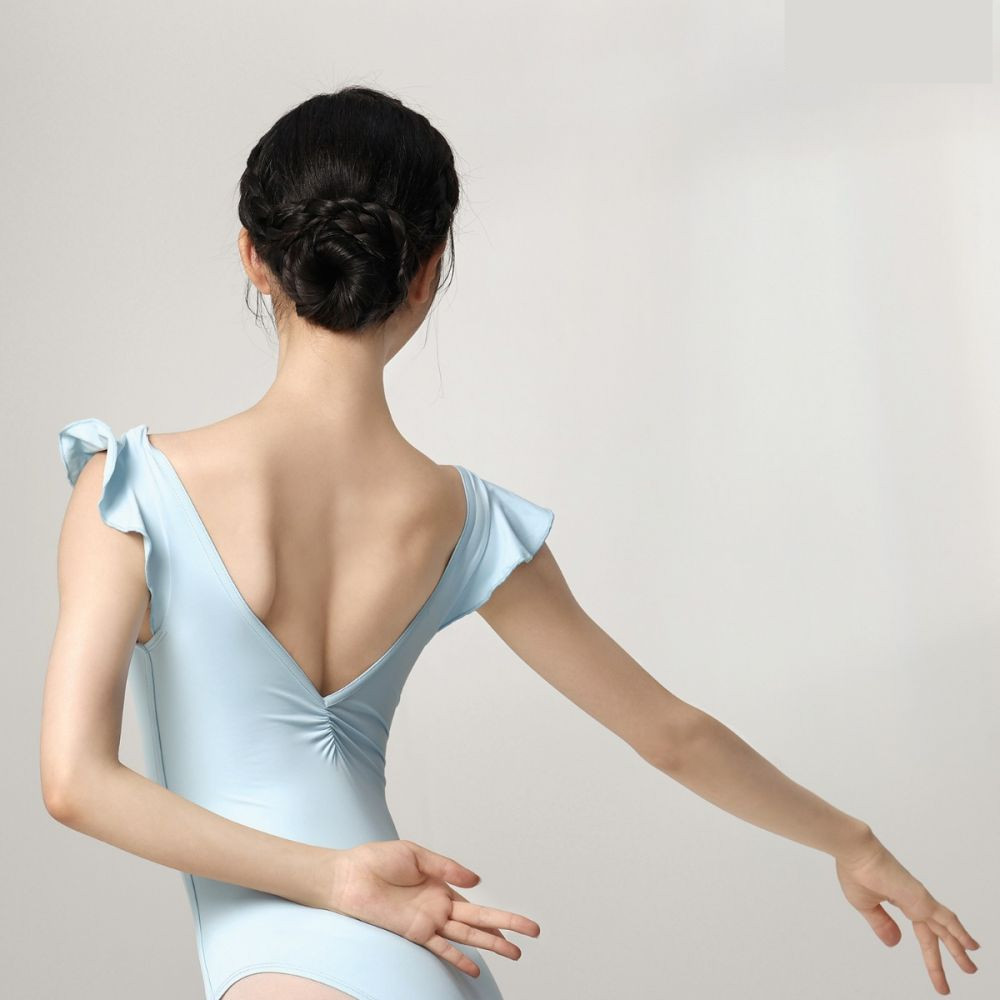 Elegant, very feminine ballet dress from Sansha. We could imagine this ballet dress on the red carpet, but we recommend it for the ballet studio or for teh stage. The dress follows the contours of the body nicely, with a V-neck in the front and back as well, oranmented with ruffles around the shoulders.