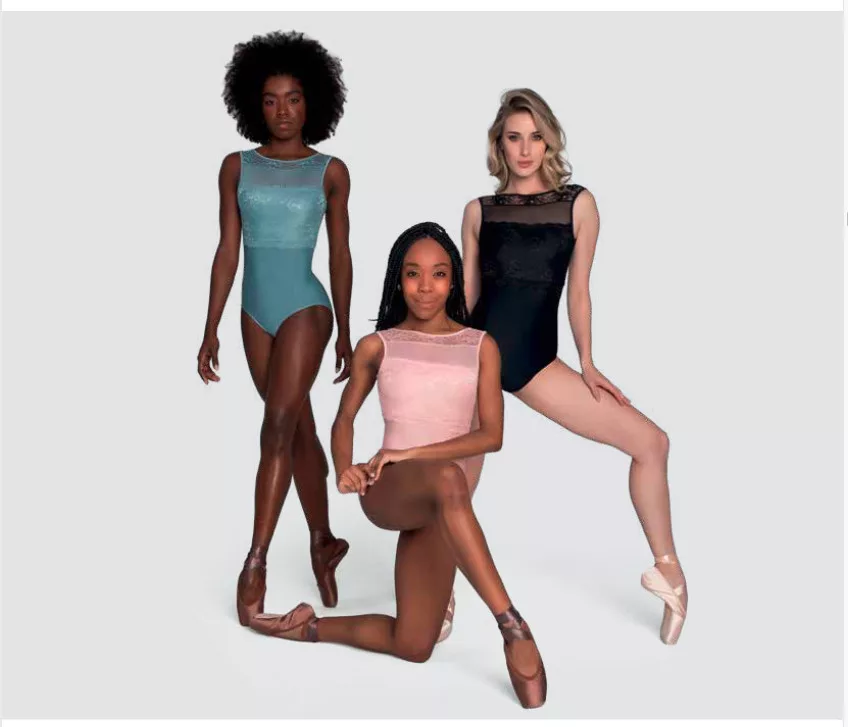 The So Danca clean and elegant suit is comfortable to wear. It is decorated with a decorative floral lace pattern and has a deep V-shaped cutout on the back.