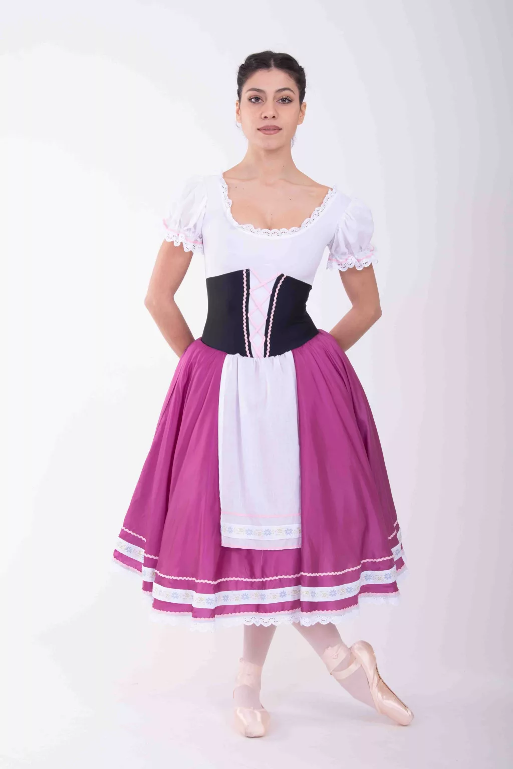 This vibrant and expressive adult costume captures the energy and spirit of the famous Tarantella dance. The combination of red, black, and white, along with ruffles and decorative accents, offers an authentic yet elegant appearance. Ideal for character dances, stage performances, or competitions. Made from high-quality materials with a comfortable fit that allows for full freedom of movement and confident stage presence.