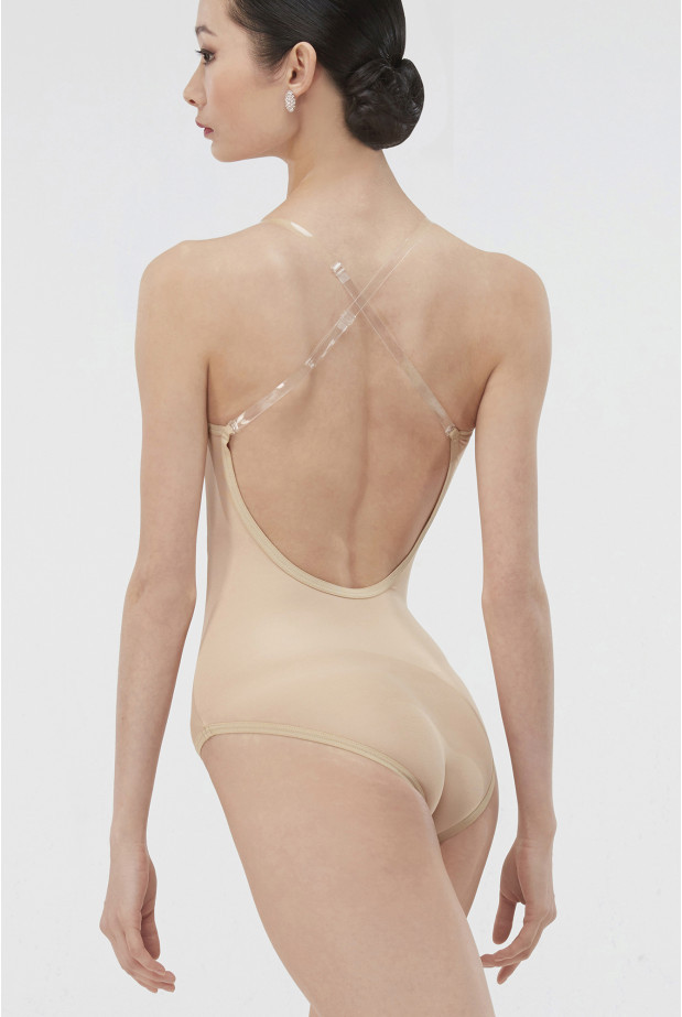 The unique silicone strap design is not only functional but also aesthetically striking, accentuating the wearer’s silhouette and adding a special modern twist to the traditional leotard style.