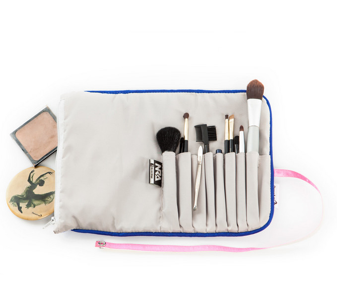 The Artful Traveler allows brush enthusiasts to organize, protect, and travel with their brush and make up collection. The convenient case carries and protects several brushes as well as additional small beauty necessities. It is made of waterproof polyester with a faux leather tassel.