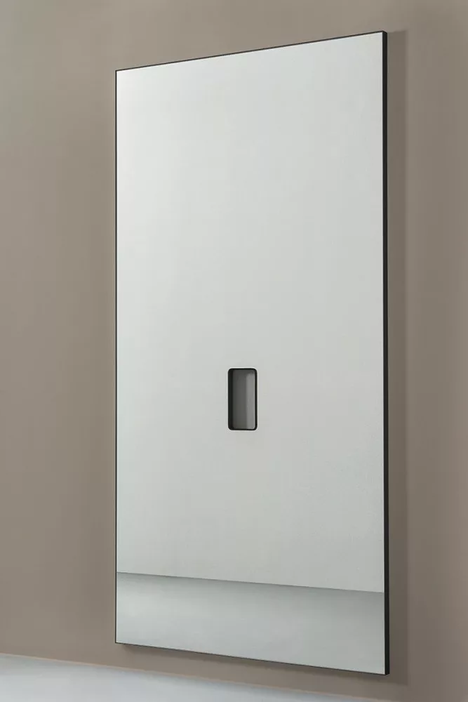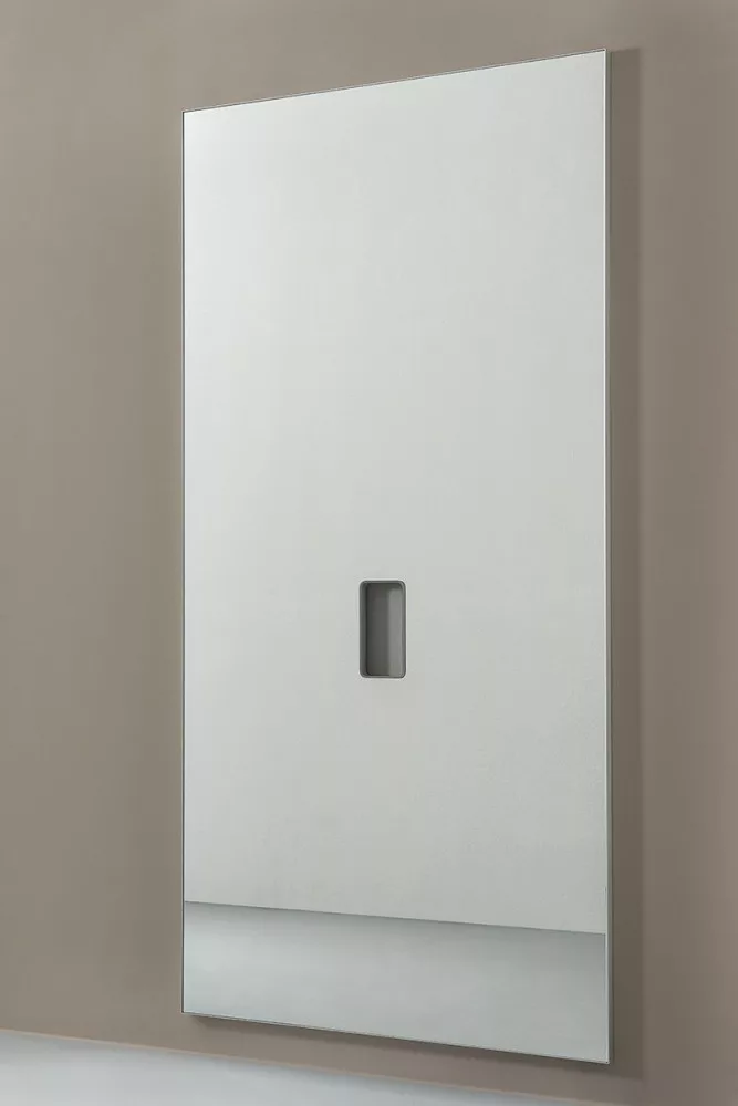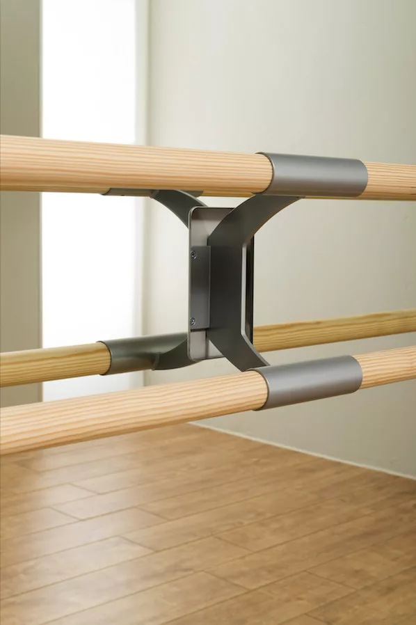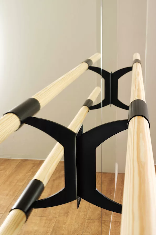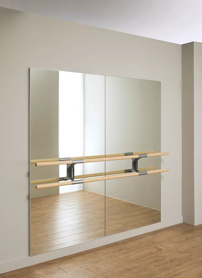 A wall mounted mirror with a central 10 x 20 cm opening that allows the attachment of our ARABESQUE-SINGLE or DOUBLE wall brackets to give a complete mirror and barre installation. Hung flat against the wall and designed with safety in mind.