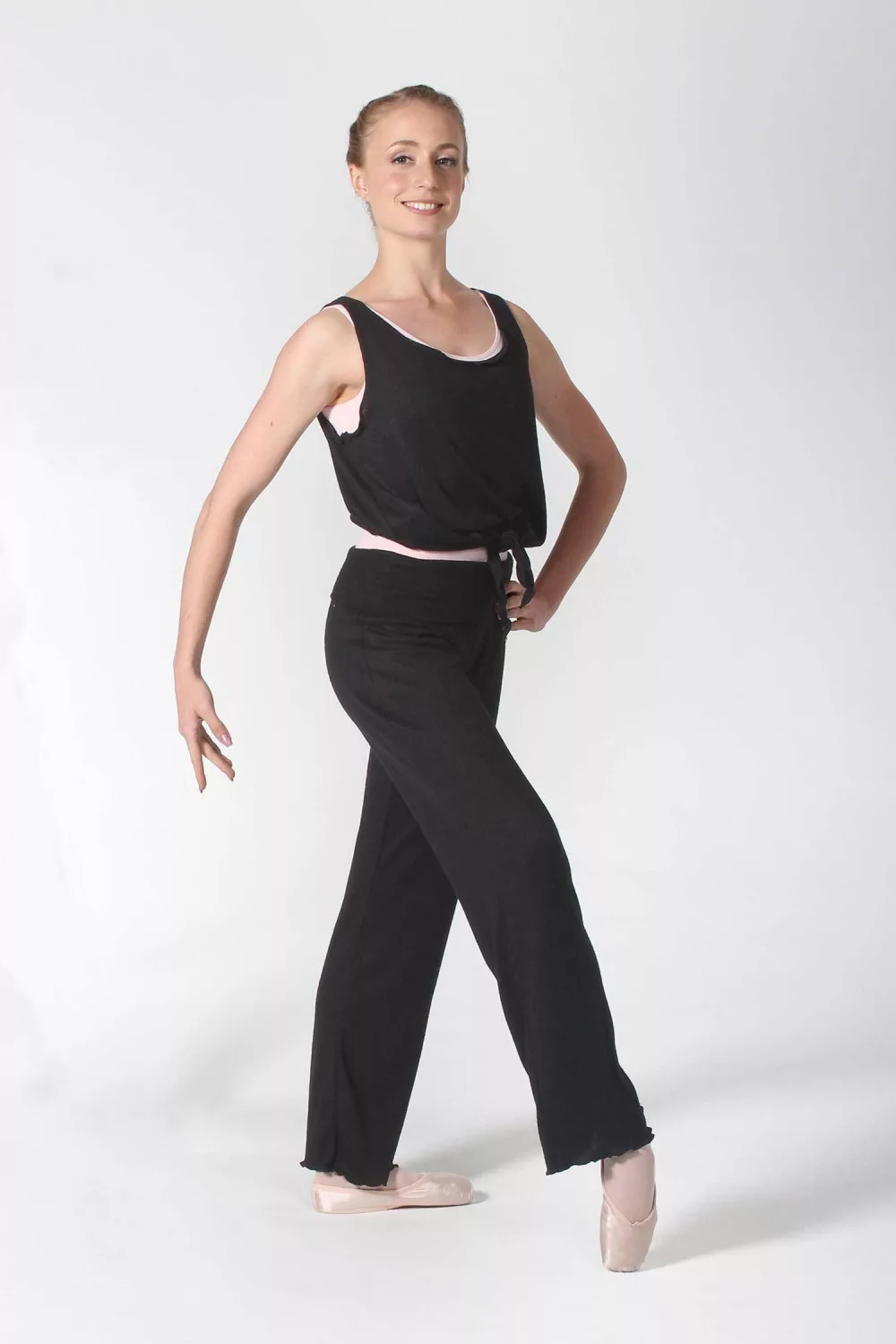 Pants made of soft, knitted material, which follows the contour of the body with its comfortable, soft material, protecting the joints.