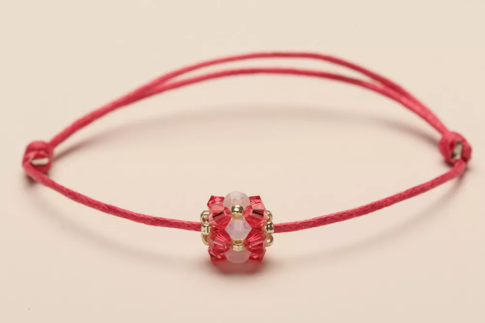 SPARK spherical bracelet, hand-stitched with Swarovski crystals, on waxed cotton thread, with a sliding knot. The jewels of the MACARON collection are inspired by the colors and shapes of the French sweets created by the Cake Shop.