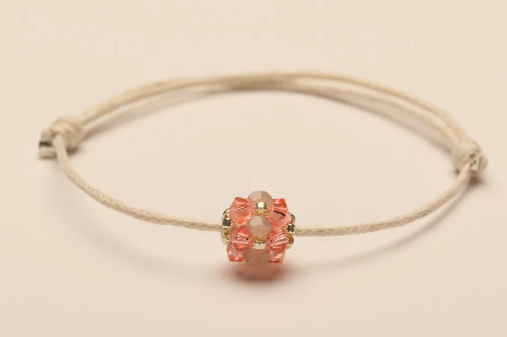 SPARK spherical bracelet, hand-stitched with Swarovski crystals, on waxed cotton thread, with a sliding knot. The jewels of the MACARON collection are inspired by the colors and shapes of the French sweets created by the Cake Shop.