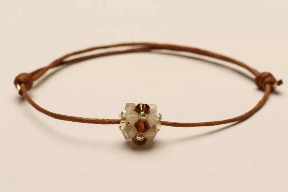 SPARK spherical bracelet, hand-stitched with Swarovski crystals, on waxed cotton thread, with a sliding knot. The jewels of the MACARON collection are inspired by the colors and shapes of the French sweets created by the Cake Shop.