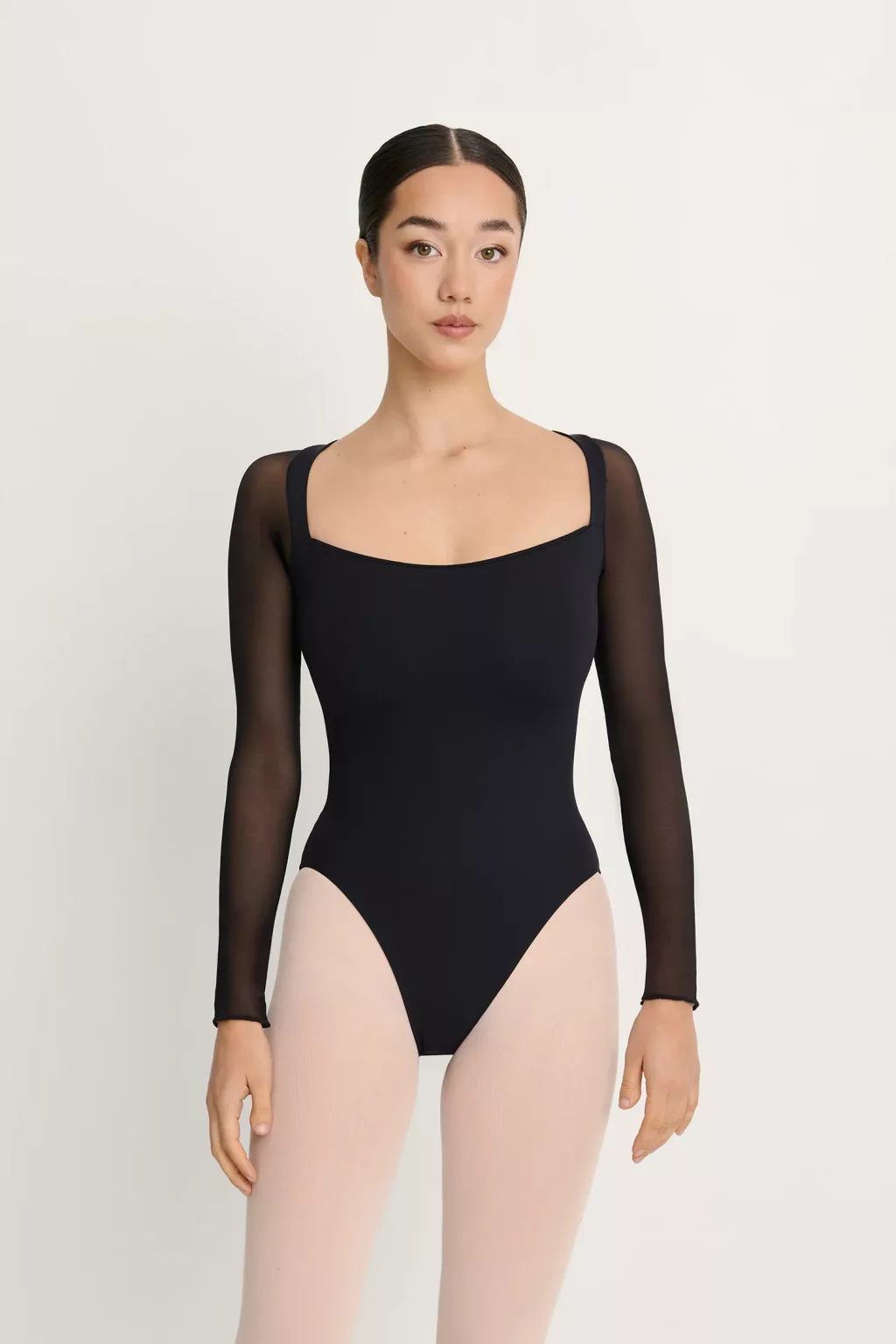 Intermezzo 31731 long sleeve leotard with tulle inserts and tulle sleeves