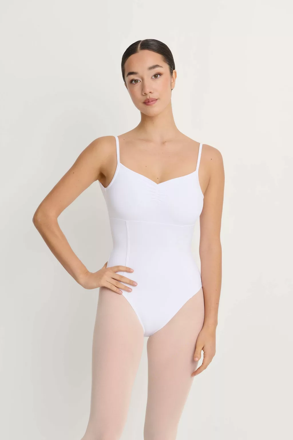 Discover elegance and comfort with this classic spaghetti strap ballet dress, featuring a ruched heart-shaped neckline and a low back that beautifully enhances feminine lines. Designed with removable padding in adult sizes, it ensures the perfect fit while providing maximum comfort.