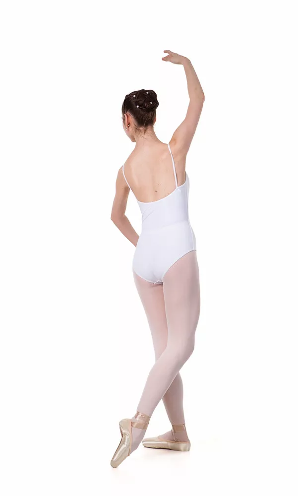 Taylor camisole leotard made of fine-touch suede material. Available in different sizes according to body height, it is an excellent choice for ballet class, gymnastics, and practice. Basic piece, basic equipment, which is essential for creating the right dance clothing.