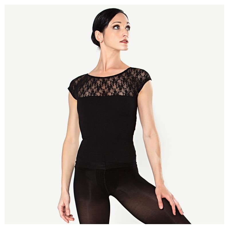 Csipkebetéttel díszített rövid ujjú dressz, puha tapintású pamut anyagból, hátán kör alakú kivágással.