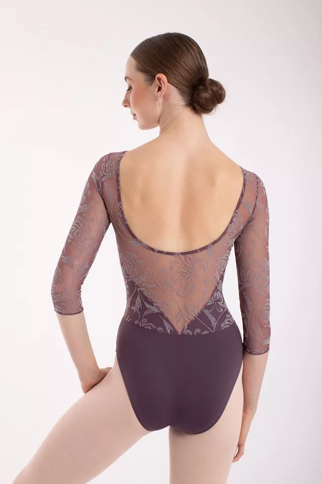 Rochie de balet Intermezzo cu maneca 3/4. Are material dublu pe piept, deci nu este transparent. Frumosul său model imprimat de la talie în sus este făcut și mai deosebit de inserțiile din material muselină, atât în ​​față, cât și în spate. Poate fi o alegere excelentă, indiferent dacă o porți la un examen sau la clasă.