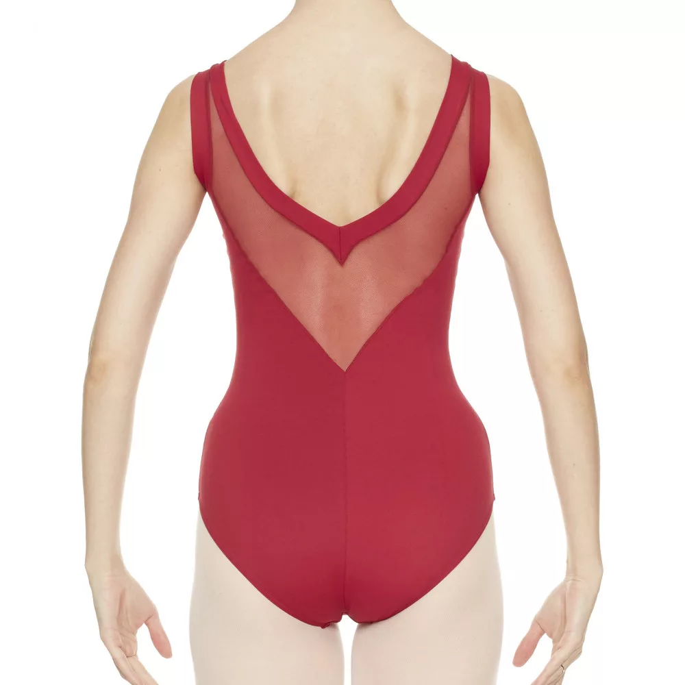 Tricou de balet de balet Intermezzo cu bretele din jerseu gros și inserții de tul pe bretele, cu decupaj în formă de "V" în față și la spate.