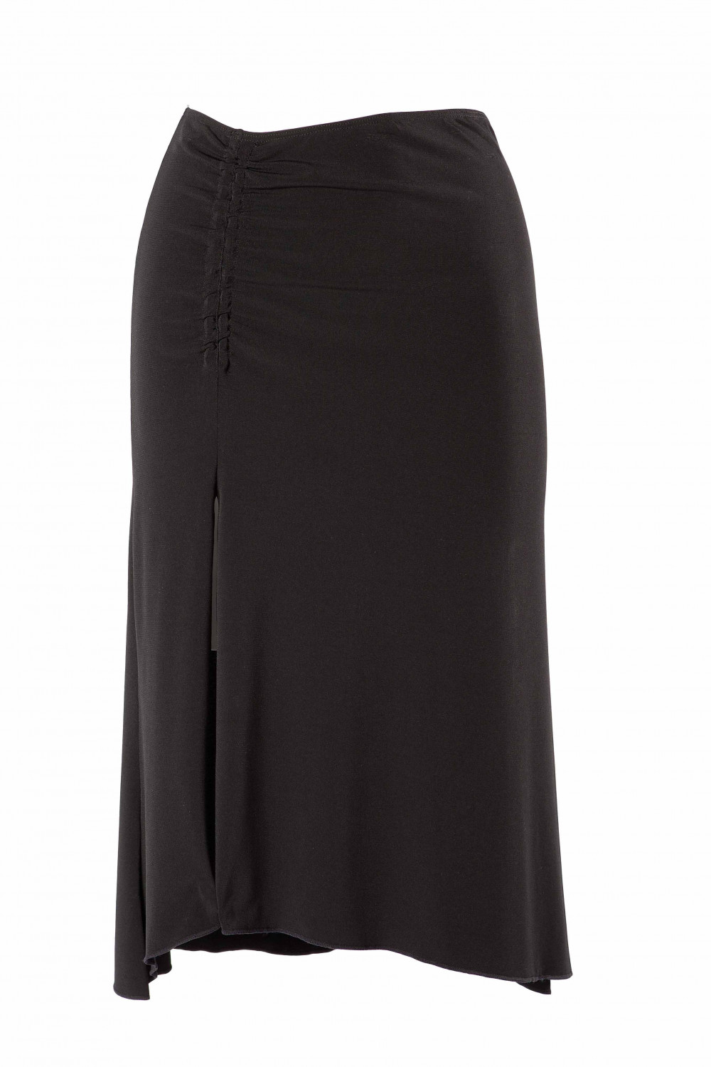 Fustă latino Intermezzo sub genunchi, perfectă pentru a practica dansurile latino. Datorită materialului său delicat, urmează contururile corpului și este confortabil de purtat pentru toți iubitorii de dans.