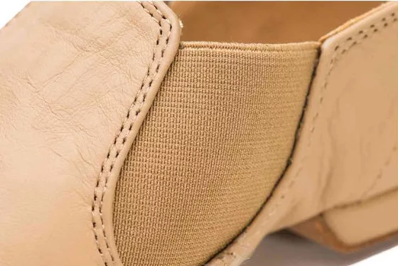 Cizme de jazz moderne cu talpă joasă, din cauciuc și piele. Datorită părții superioare din piele moale, cizma este incredibil de confortabilă și se potrivește aproape imperceptibil pe picior. Talpa din piele oferă atât aderență bună, cât și alunecare, ajutându-vă să vă mișcați ușor. Recomandată pentru lecții de jazz, musicaluri, teatru, dans contemporan sau pentru predare.