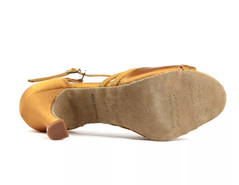 Pantofi latino cu curea la gleznă, decorați cu pietre Margarita. Partea superioară este confecționată din țesătură satinată de înaltă calitate, care conferă purtătorului un aspect elegant. Sandala cu vârful deschis prezintă un vârf decorativ împodobit cu pietre decorative, catarama rapidă ușor de reglat și de fixat, toc subțire și elegant, talpă moale. Purtați-le pentru dansuri latino, salsa, cursuri de bachata, revedete, dansuri de spectacol sau chiar nunți.